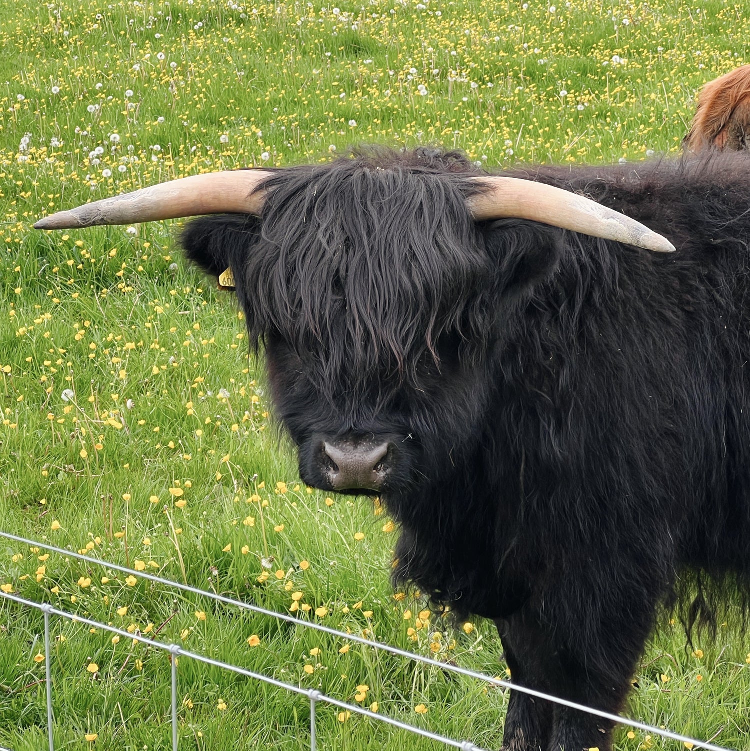 He is award-winning pedigree highland bull, who is very quiet and is usually found scratching under a hedge.