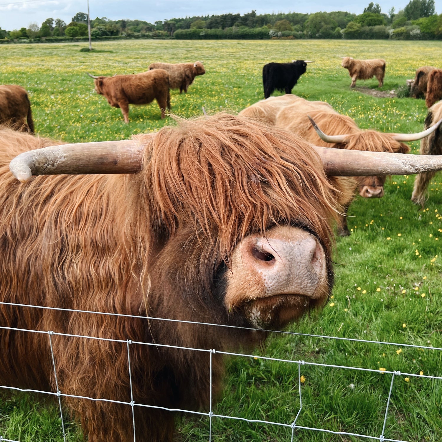 The Highland breed was chosen as they are low input and hardy, allowing them to live outside all year round grazing on our grass but also have less of an impact on the environment, as they don’t require intensive farming.