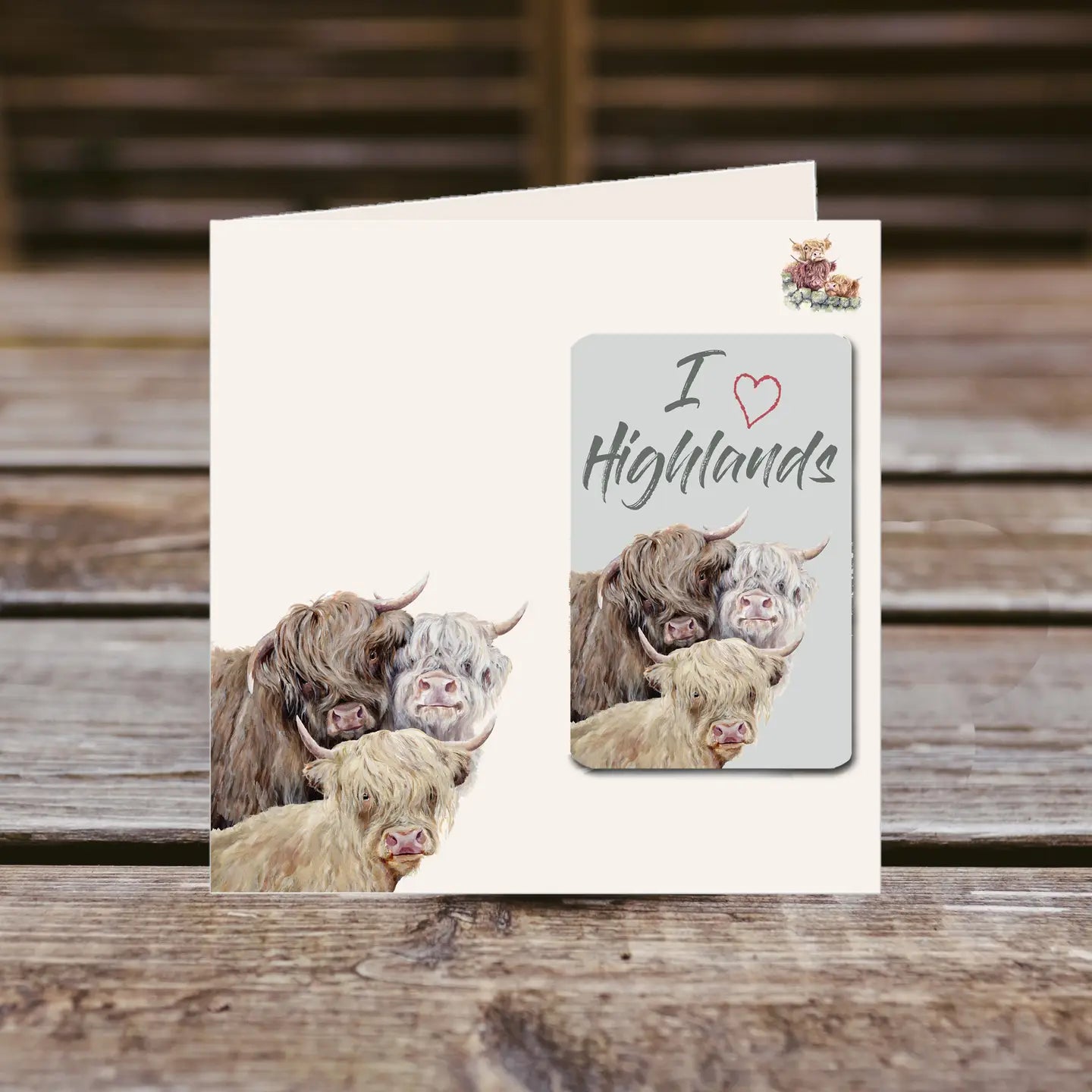 This is a greetings card with a metal fridge magnet attached, so a card and a gift all in one. The magnet is held on the front of the card, with glue dots, so it is easily removable .